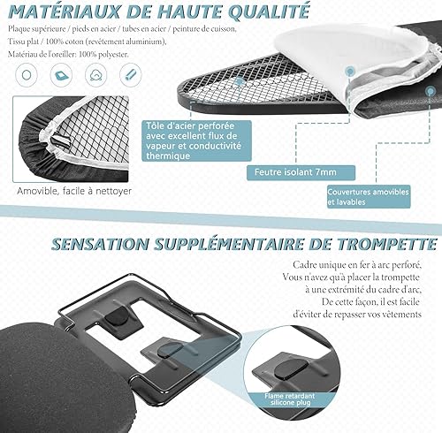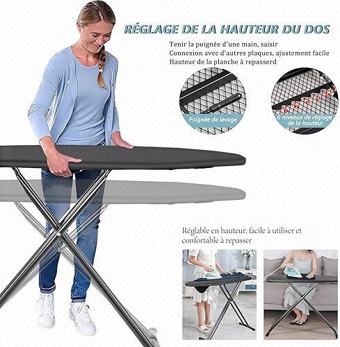 IBVIVIC Planche à Repasser avec Repose-fer 122x38 CM, Table à Repasser Pliable avec Housse Résistante à Chaleur, Planche à Repasser à Hauteur Réglable avec Pieds Antidérapants, Économie d'Espace, Noir