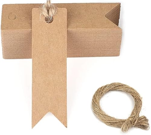100 pièces 7 x 2 cm étiquettes cadeaux à double face, étiquettes en carton pour mariage, bagages, Noël, art et artisanat - marron
