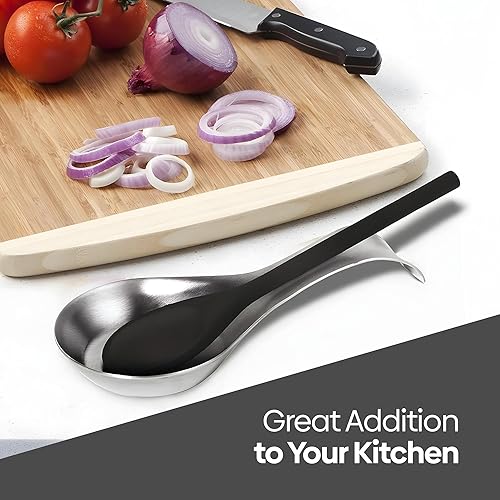 EVOKK Repose-cuillère en acier inoxydable poli de 20 cm, plateau durable pour la cuisine, louches et cuillères à café