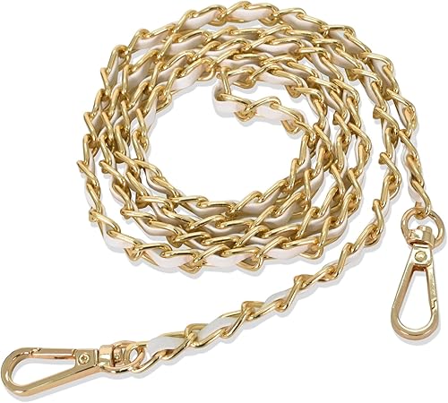 Shengxi 1pcs Chaîne de Sac à Main en Métal Sangles de Sac à Main en PU Réglables avec Boucles 118 cm Chaîne en Alliage Doré de Remplacement Pour Femme (Or/Blanc)
