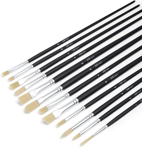 Elan Pinceaux Langue de Chat, Lot 8 Pinceaux Peinture Huile, Poil Synthétique Imitation Soie de Porc, Pinceau Langue de Chat, Pinceau Huile Peinture
