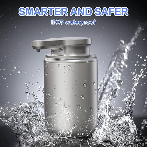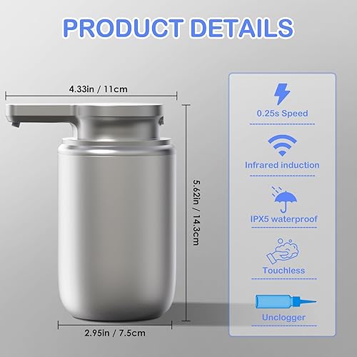 LAOPAO Distributeur de savon mousse automatique avec capteur : distributeur de savon automatique IPX5 étanche USB-C avec capteur infrarouge pour cuisine et salle de bain (argent)