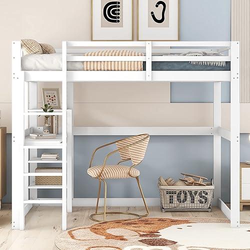 Dolamaní Lit mezzanine pour enfant avec espace de rangement, entièrement en pin, lits avec 4 compartiments de rangement et 1 plateau de bureau (blanc, B, double), WX000114AAE-73