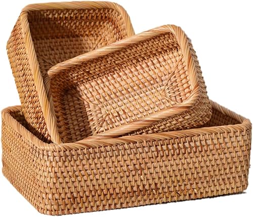 LICHENGTAI Panier rectangulaire en rotin tressé à la Main, Panier De Rangement Tressé Corbeille à Pain Panier à Pain Osier Rotin, Paniers De Nourriture De Service pour Fruits décoration de Cuisine