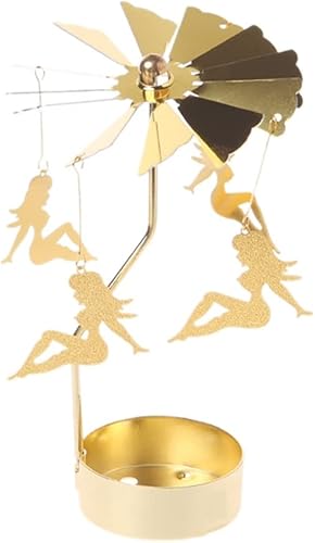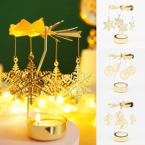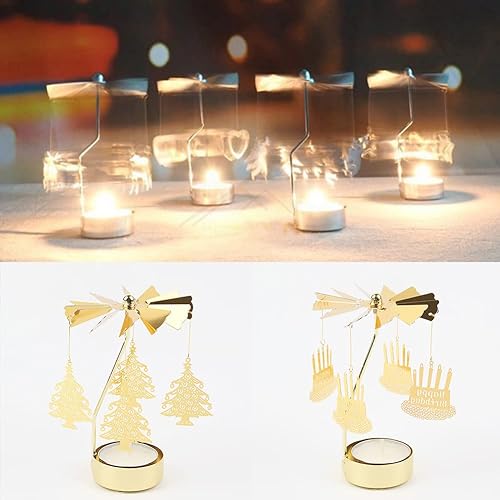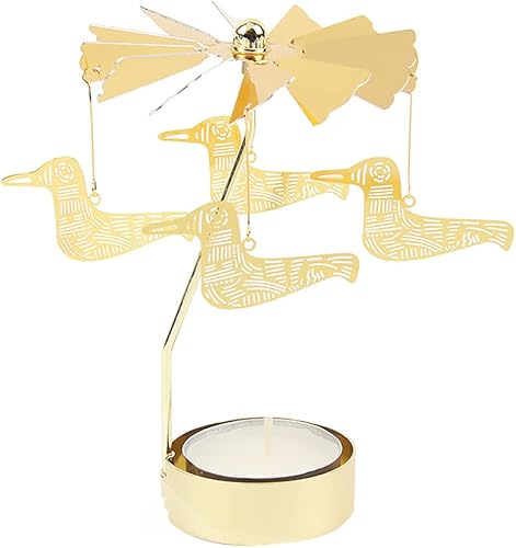 Bougeoirs Chandelier Noel Créatif Modèle de Plume Bougeoir Rotatif, Bougeoir Porte- Bougie Tournante Chandelier Or en Métal, Vintage Bougeoir de Décor Table, Carrousel de Noel pour Maison Mariage Fête