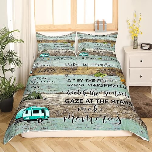 Ensemble de Literie Camper pour Enfants Garçons Filles,Housse de Couette Happy Travel Camping Housse Couette Woodland Stars Month Deer 220x240,Parure de Lit de Ferme Rurale Décoration D'Intérieur