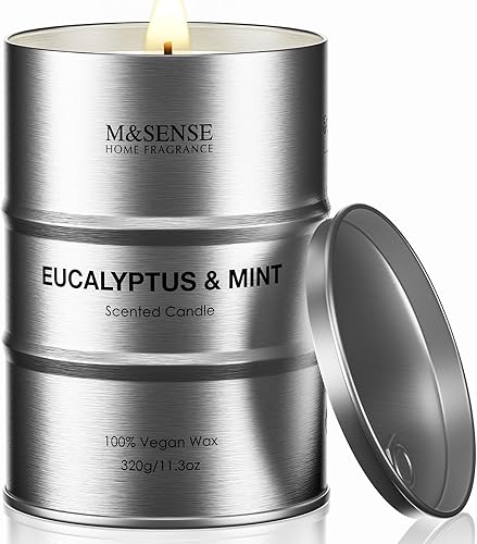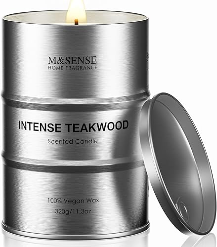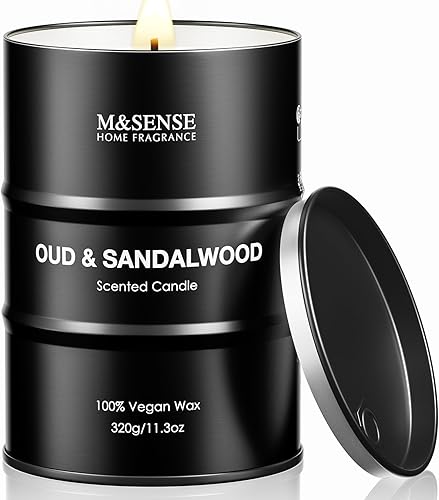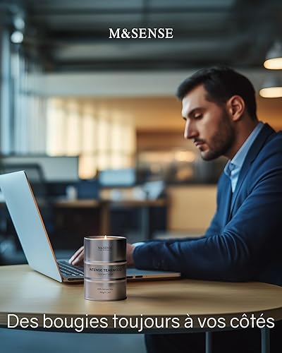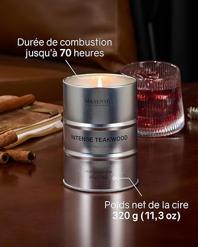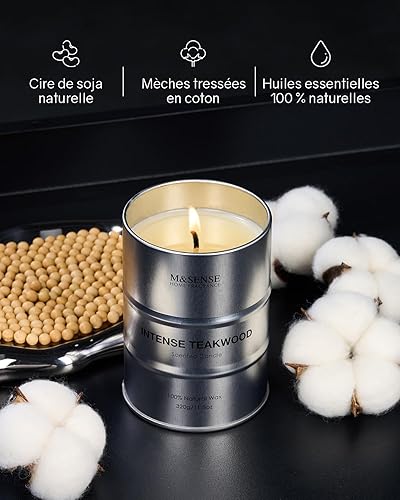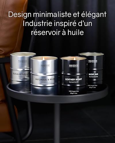 M&SENSE Bougie parfumées Tabac Vanille | 320g, Arôme chaud et boisé 70h, Bougies naturelles pour salon masculin, Cadeau papa chic pour Noël ou soirées cosy