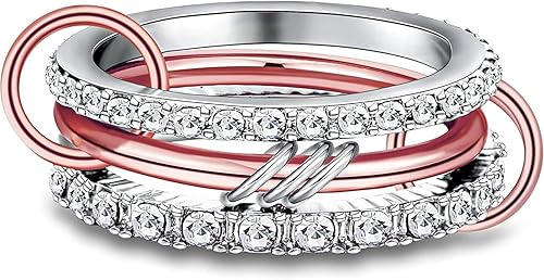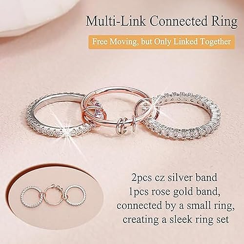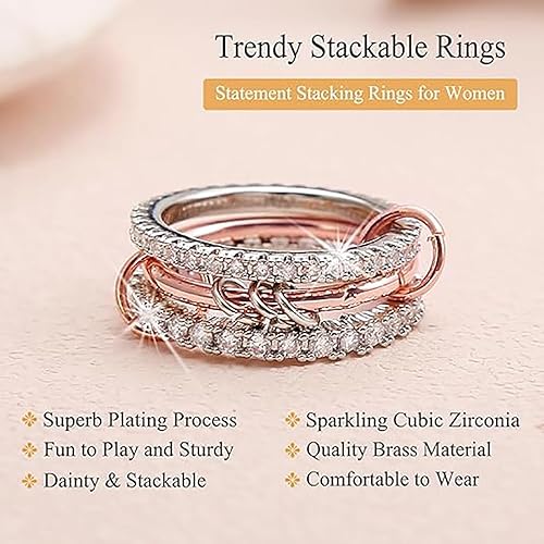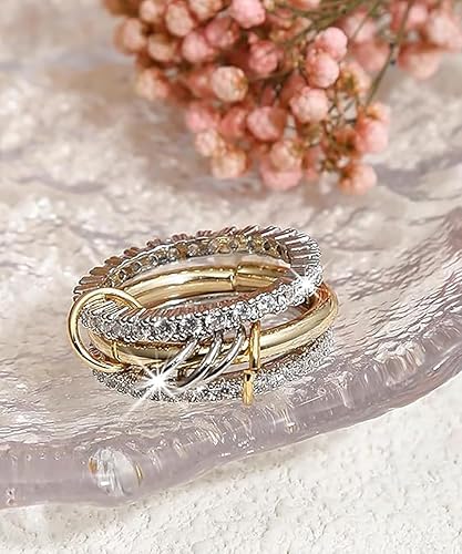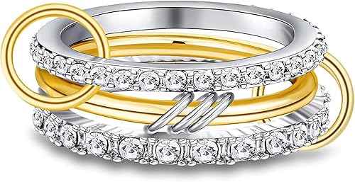 IMMUNOTRAX Bagues empilables plaquées or 14 carats pour femme - Ensemble de 3 bagues entrelacées en oxyde de zirconium, pour un usage quotidien (tailles 7 à 10)