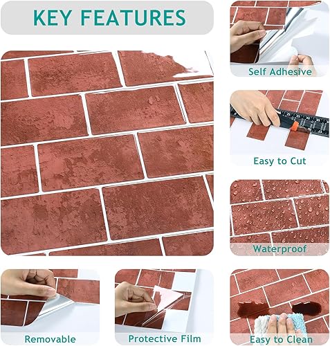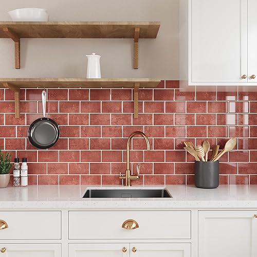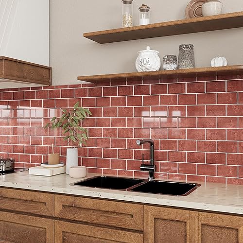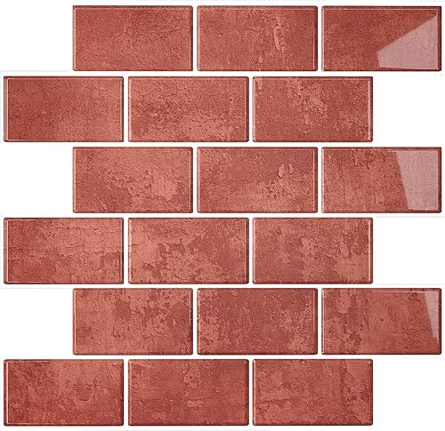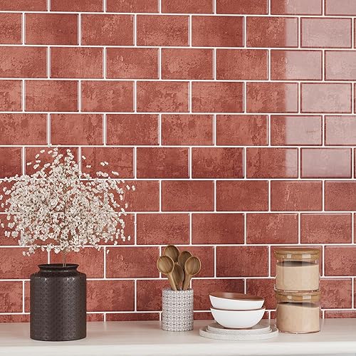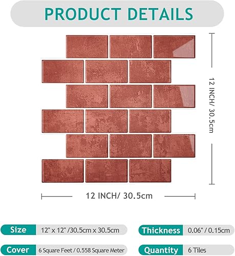 VEELIKE Credence Adhesive pour Cuisine Orange Rétro 6 Pièces 3D Stickers Carrelage Adhesif Mural Salle de Bain Carreaux Adhesif Cuisine Dalle PVC Adhesive Murale Imperméable Amovible 30.5cm×30.5cm
