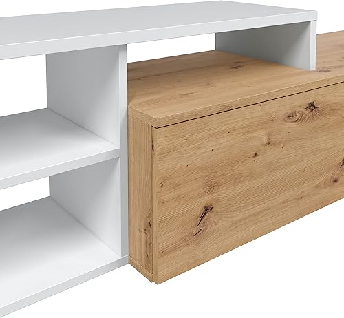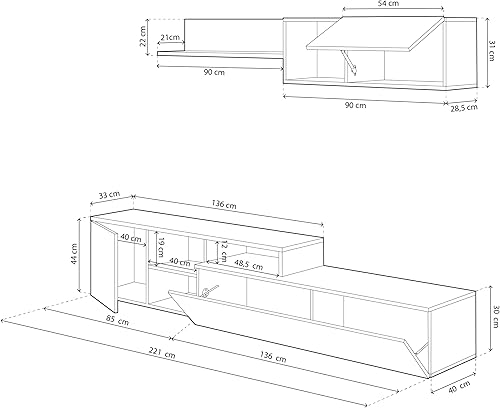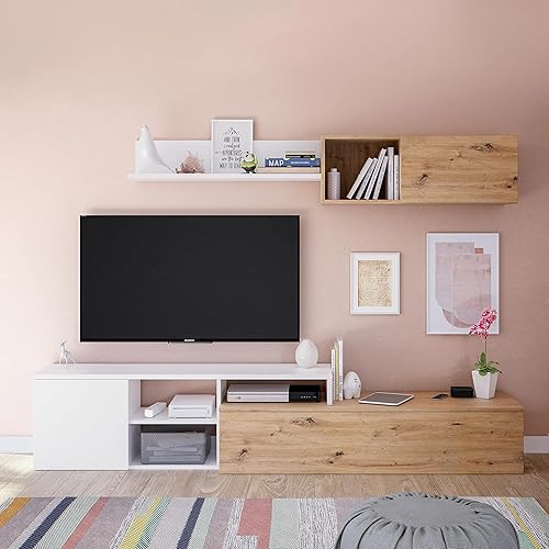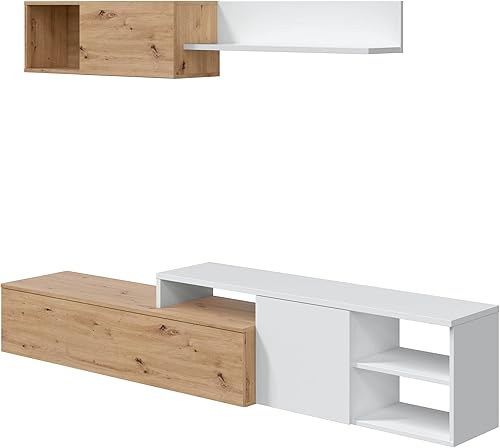 Habitdesign Ensemble Salon Réversible, Meubles de Salon, Modules de Salle à Manger, Modèle Julia, Finition Chêne Nodi et Blanc Artik, Dimensions : 221 cm (Largeur) x 44 cm (Hauteur) 40 cm (Bas)