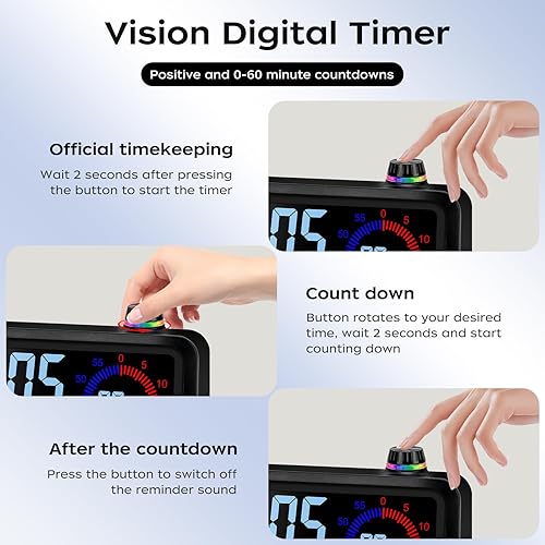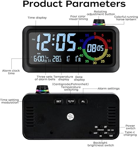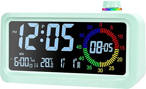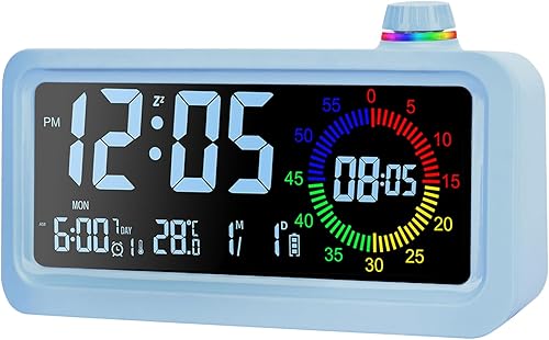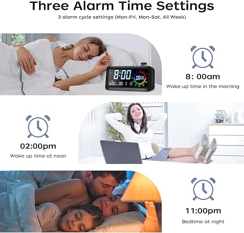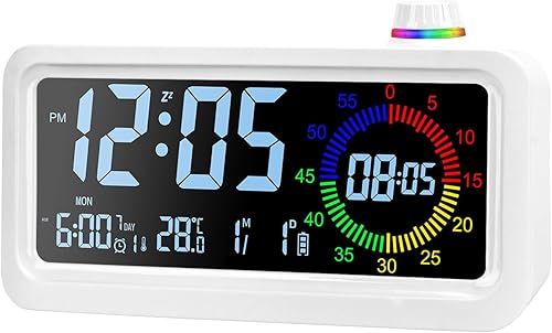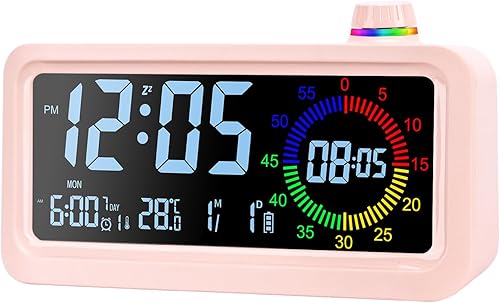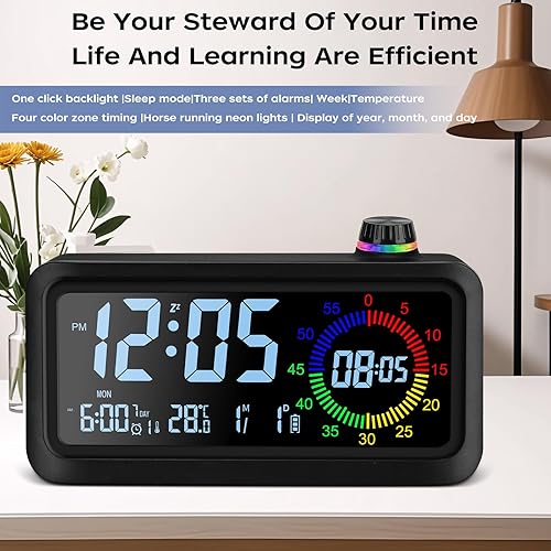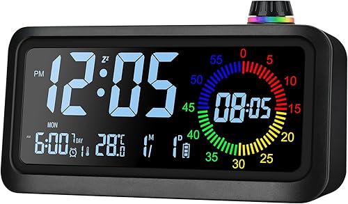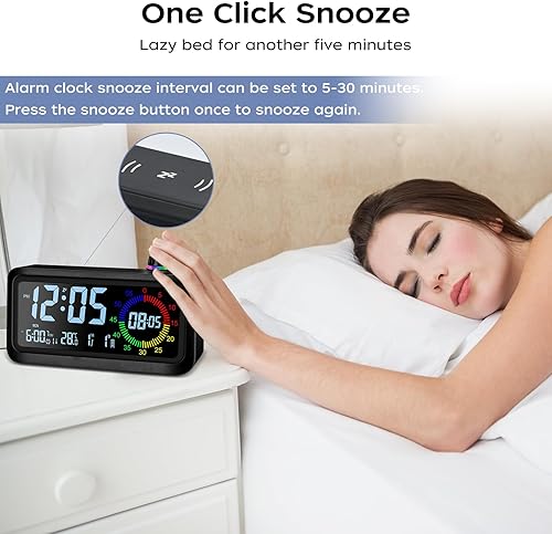 Lychee Réveil numérique, écran LED Couleur visuel Réveil avec minuterie, 2 Niveaux de luminosité, 3 Niveaux de Volume, 3 alarmes, Fonction Snooze, 12/24 Heures, Compte à rebours 60 Minutes (Noir)