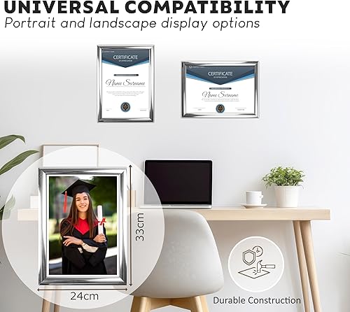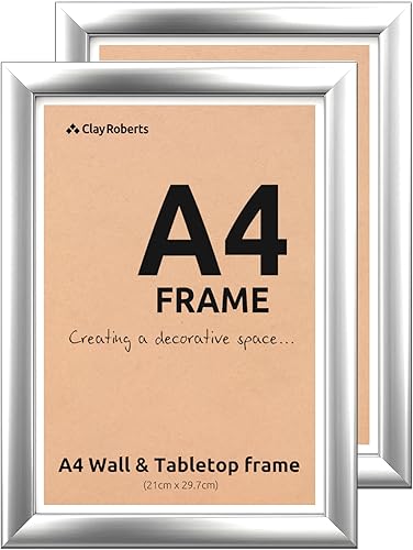 Clay Roberts Cadre Photo Argenté, A4 (21cm x 29,7cm), Pack de 2, Cadre de Certificat/Diplôme/Documents