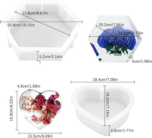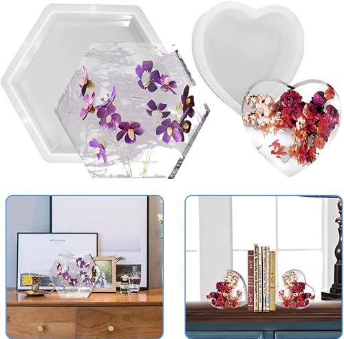 AIFUDA - Lot de 2 grands moules en résine - Moules hexagonaux en silicone en forme de cœur pour serre-livres - Moules en silicone pour spécimens de résine époxy, fleurs préservées, mariage