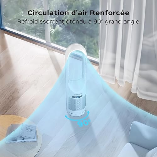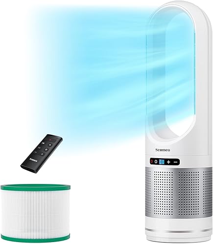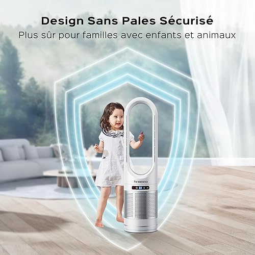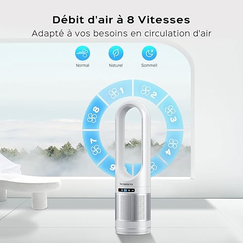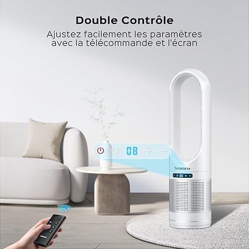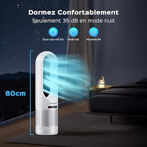 Senmeo Ventilateur Sans Pale avec Purificateur d'Air, Ventilateur Colonne de 80 cm, HEPA Pour 99,7% de Fumée et de Poussière, 8 Vitesses, Minuterie 8h, Ventilateur Tour pour Chambre à Coucher, Bureau