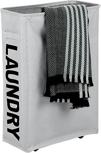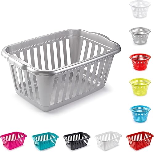 PLASTIFIC Grand Panier à Linge en Plastique de Haute Qualité avec Poignées, Panier à Linge à Linge de Style Hipster pour Sécher les Vêtements Pépinière, Argent - Rectangulaire,