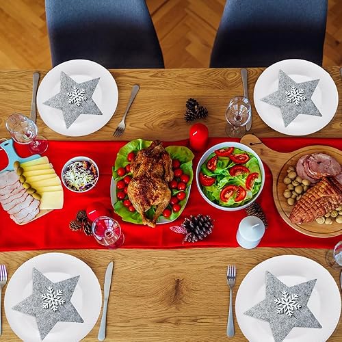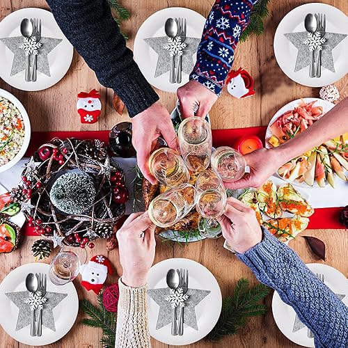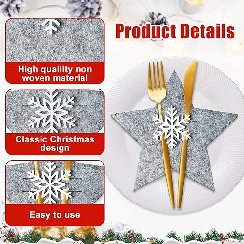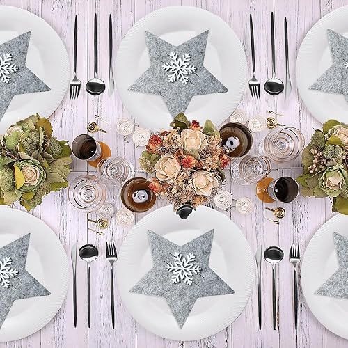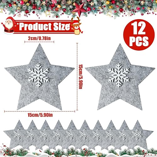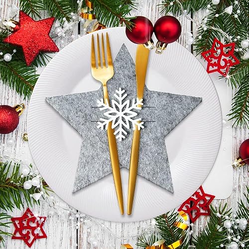 BNGXR Porte Couverts de Noël, 12 Pièces Porte Couverts Noël en Feutre en Forme de Flocon de Neige, Étoile Paniers à Couvert Decoration de Table Noël pour Décoration de Table de Fête de Noël