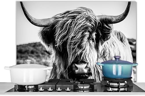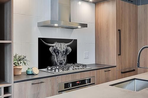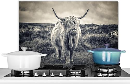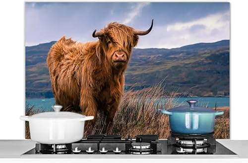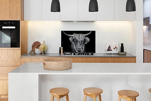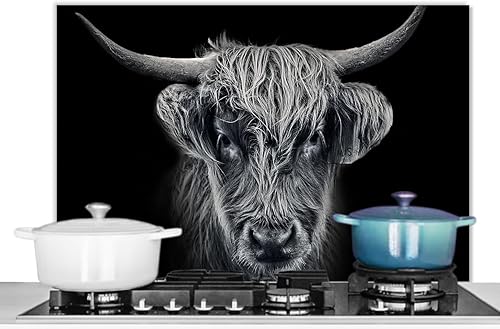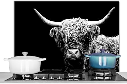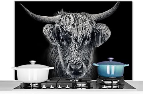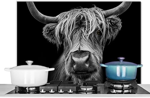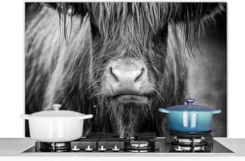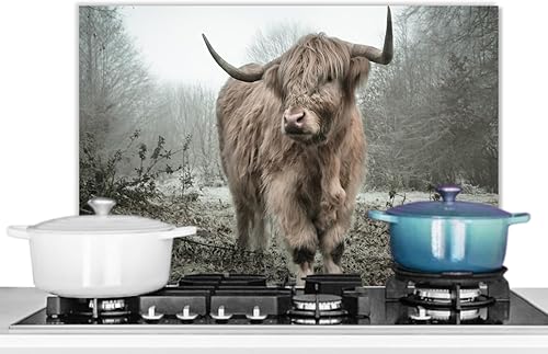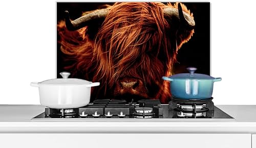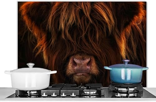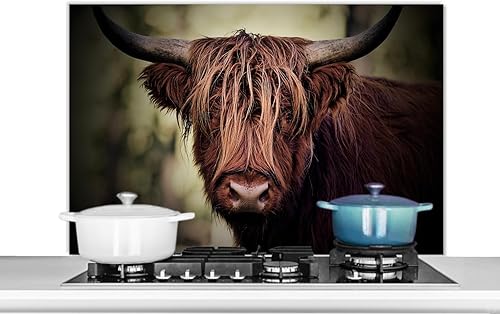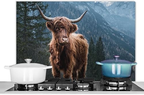 KitchenYeah© Anti Éclaboussure Cuisine 70x50 cm Aluminium Plaque Anti Chaleur Crédence sur Mesure Protection Mur Credence+Cuisine Highlander écossais - Nature - Automne - Animaux - Faune - Forêt