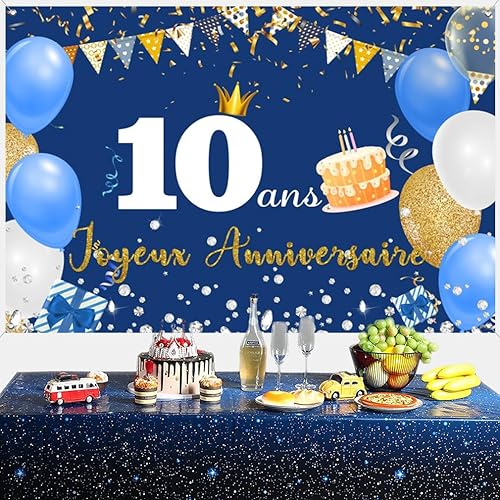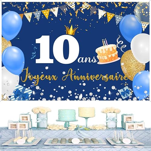 10 Ans Anniversaire Décorations Fête en Bleu, Bannière 10 Ans Anniversaire Garçon, Signe de Bienvenue Fête d'anniversaire