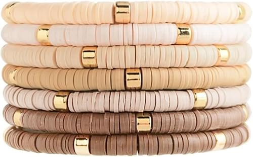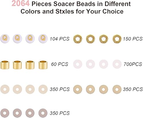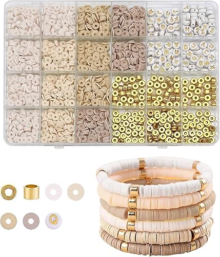 Thapncow Lot de 2064 perles Heishi pour bracelets, Perles Heishi Colorées, perles en argile polymère de 6 mm, Perles perles Lettres Kit de Fabrication de Bijoux, pour des Bracelets D'amitié(Beige)