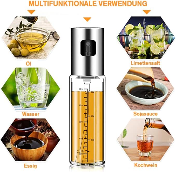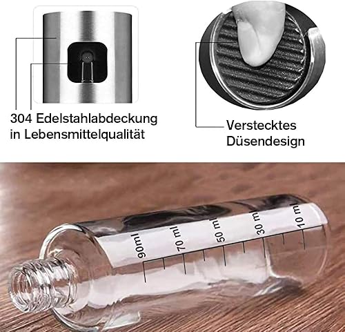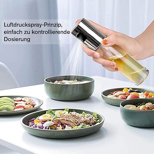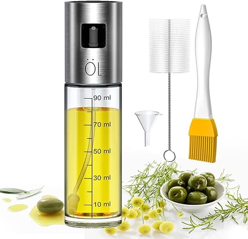 Leaflai Pulvérisateur à huile à vinaigre, Pulvérisateur d'huile en verre avec pinceau et entonnoir pour cuisine, barbecue, salade, pâtisserie, 100 ml