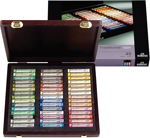 Rembrandt Professional Pastel Doux Set dans un coffret en bois de luxe | Landscape Selection Traditional | 45 pastels entiers