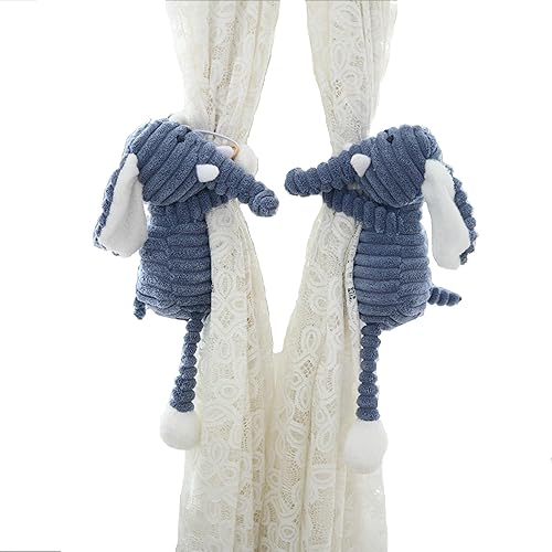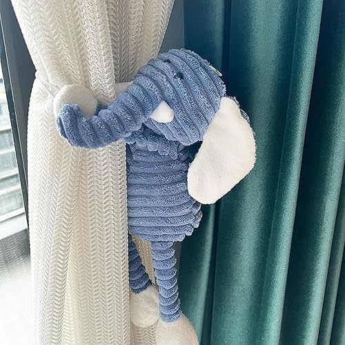 ED-Lumos Dormitotio Lot de 2 embrasses de rideaux pour enfants avec boucles et cordon Motif éléphant Bleu