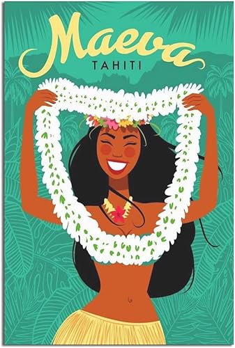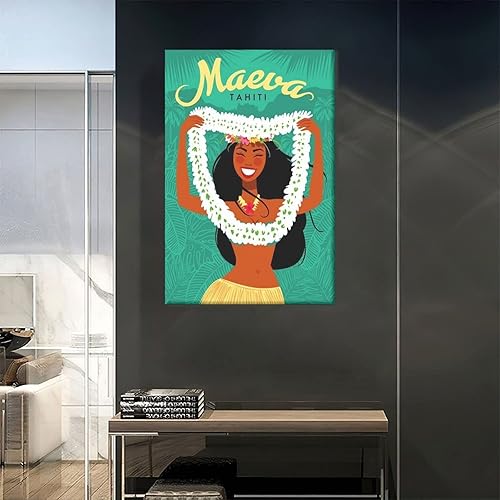 YONGCAI Poster vintage Maeva Girl Tahiti sur toile pour décoration murale de chambre