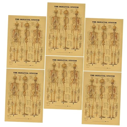 PRETYZOOM 1 Jeu Affiche Rétro Nostalgique Système Graphique Posters Corps Affiche De L'océan Cœur Wigwam Accessoires Décor Goth Robinet Squelette Lieu Cerveau Khaki Papier 6 Pièces