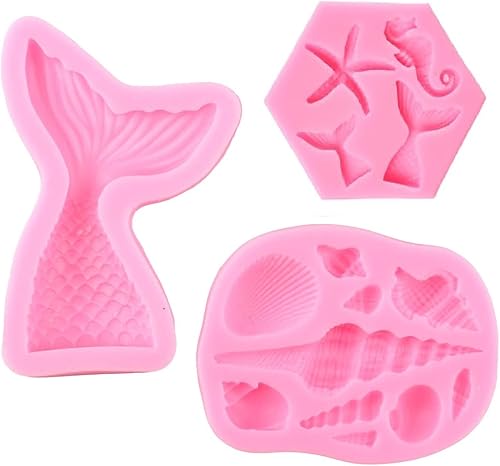 ELINKA Moule à gâteau à thème Mermaid, Mermaid, Coquillages, moules de Fond en Silicone de Corail pour Candy Chocolate sugarcraft Cake Decor, Cupcake Topper, Polymer Clay, Craft