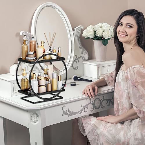 Treesunshine Organisateur de maquillage, à 2 niveaux, panier de rangement pour cosmétiques, parfum, organiseur de soins de la peau, organisateur de salle de bain pour commode, chambre à coucher,