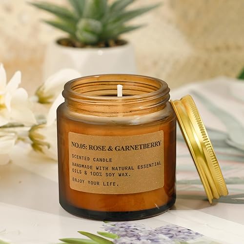 Lot de 8 Bougies Parfumées Dans un Pot en Verre Rose - Bois de Teck, Ambre, Menthe, Pamplemousse - 800G Cire de Soja Relaxante, Aromathérapie Pour Mère