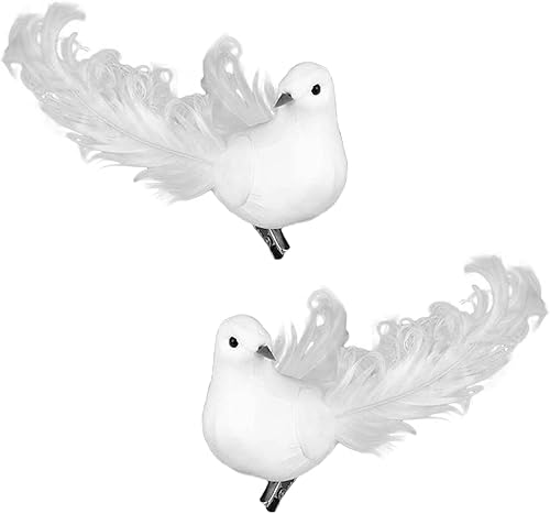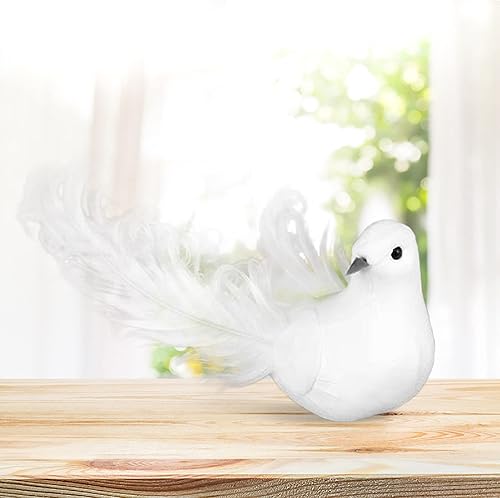 WIVAYE Lot de 12 colombes blanches artificielles avec clips en métal, mini oiseaux à plumes blanches à clipser pour les travaux manuels, les décorations de Noël, les couronnes