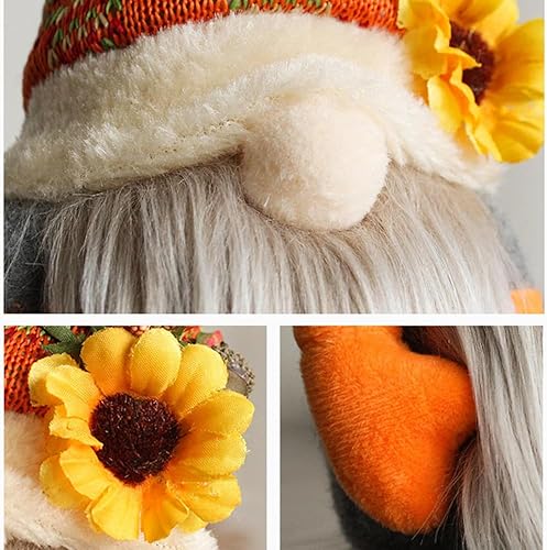 Ktnyl 2 Pièces Décorations de Lutin d'automne, Lutins de Tournesol en Peluche, Poupée Citrouille d'automne, Suédois Poupée Elfe pour Cheminée, pour Maison Cuisine