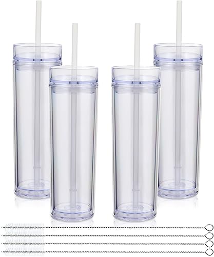 Volhoply 480ml plastique Skinny Gobelets Avec Couvercle et Paille Bulk 4 Pack, Isolé Double Paroi Bpa Free Matte Acrylique Gobelets, Glaçons de Voyage Party Cup,Cadeaux Diy(Claire,4 Set)