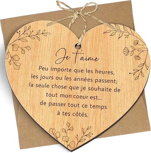 GEBETTER Cadeau Saint-Valentin 1Pc Plaque Carte en Bois “Je t’aime” Idée Cadeau pour Couple Amoureux Homme Femme Copain Copine Anniversaire Noël