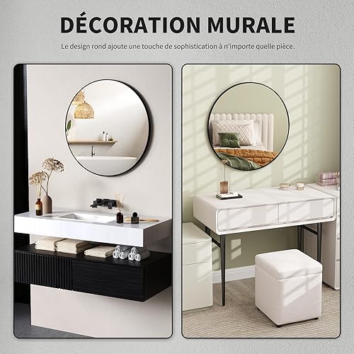 HOMCOM Miroir Rond, Miroir Salle de Bain, diamètre 70 cm, Cadre en métal, Miroir Mural, Facile à Installer, pour Chambre, Salon, entrée, Noir