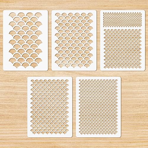 Molain Lot de 5 pochoirs réutilisables en forme d'écailles de poisson pour maquillage, travaux manuels, murs et meubles