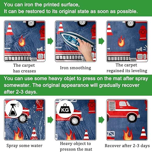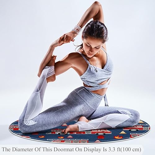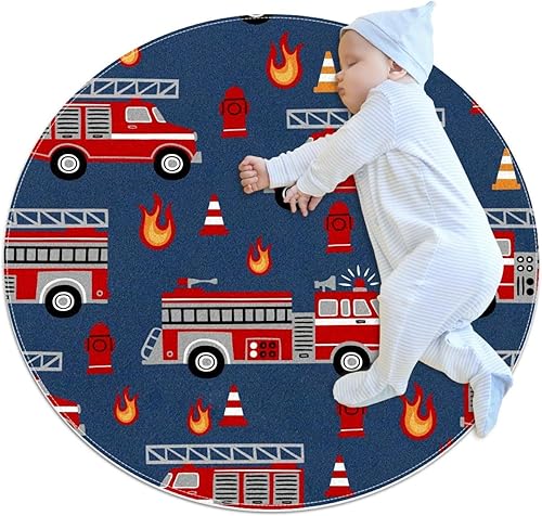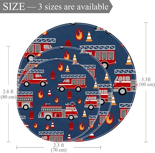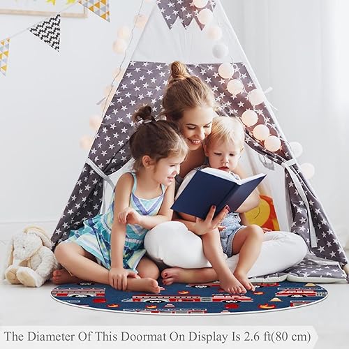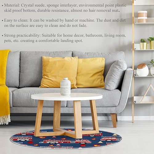 VAPOKF Tapis de salle de bain, camions de pompiers, tapis de sol antidérapant bleu foncé pour canapé, chambre, chambre à coucher, crèche (rond - Diamètre 0,7 m)