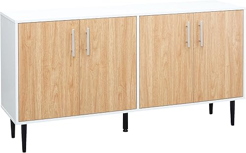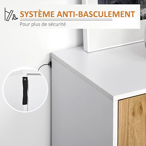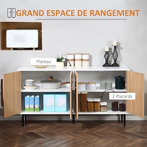 HOMCOM Buffet de Salon/Salle à Manger Meuble de Rangement 2 placards avec étagères réglablesblanc chêne Clair