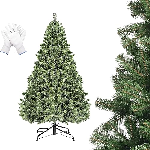 Sapin de Noël Artificiel 180 cm, avec 960 Pointes, Arbre de Noël en PVC, Montage Rapide, Support en Métal, Décoration avec Branches Denses pour Salons, Balcons, Pelouses et Magasins de Fête