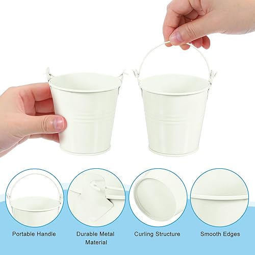 PATIKIL Petits Seaux en Métal de 7,6 x 7,6 Cm avec Poignée, 8 Mini Seaux Galvanisés Colorés pour Travaux Manuels, Décoration de Cadeaux de Fête, Beige