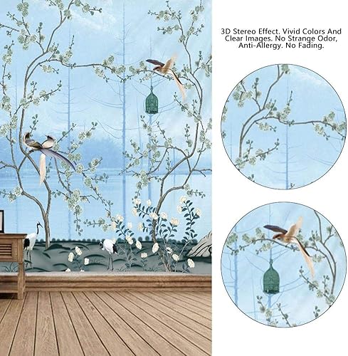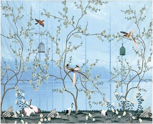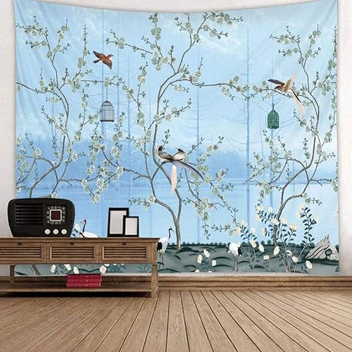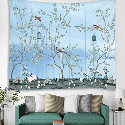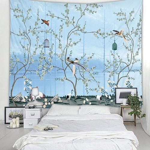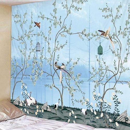 Wifehelper Grand Mur Tapisserie Bohême Bleu Fleurs et Oiseaux Doux Confortable Tenture Murale Literie Tapisserie(150 * 150cm)