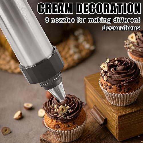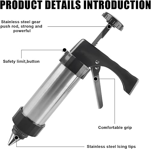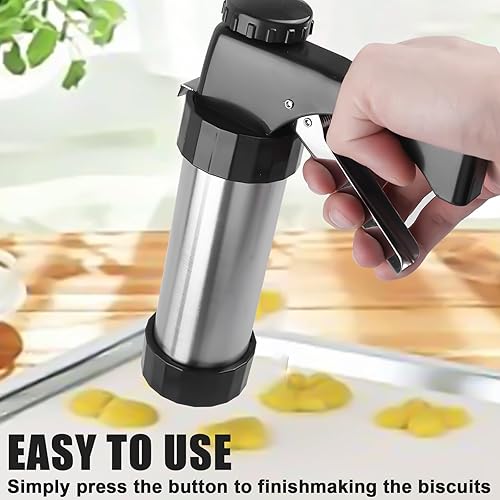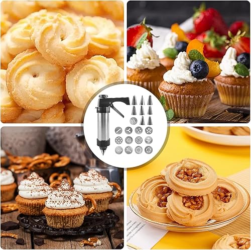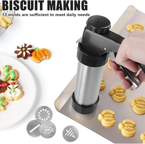 VEGOATY Presse à pâtisserie pour pâtisseries, en acier inoxydable, avec 13 pochoirs et 8 douilles, seringue à garnir pour pâtisseries DIY, presse à biscuits pour gâteaux, biscuits et décoration de