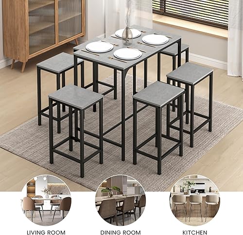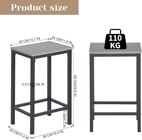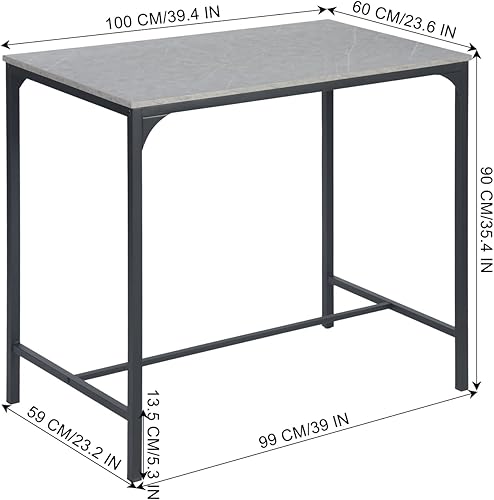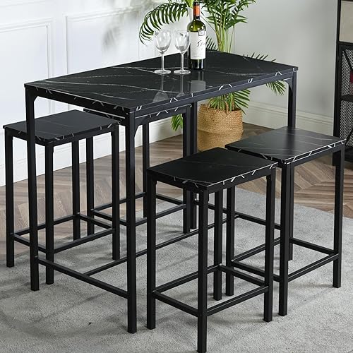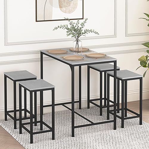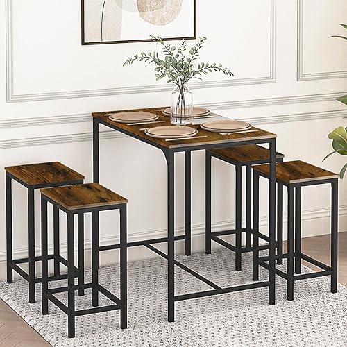 anrekl Table à manger et chaises de bar avec 4 chaises, comptoir de cuisine, comptoir de salon, structure en acier, design industriel, table de bar 100 x 60 x 90 cm, chaise de bar 30 x 40 x 65 cm,