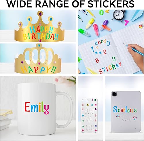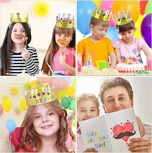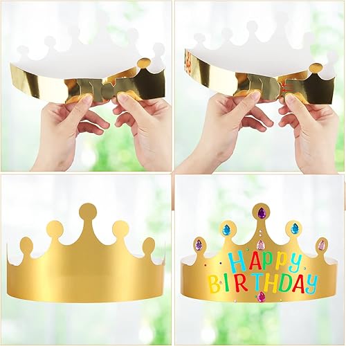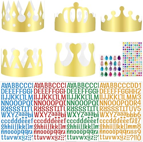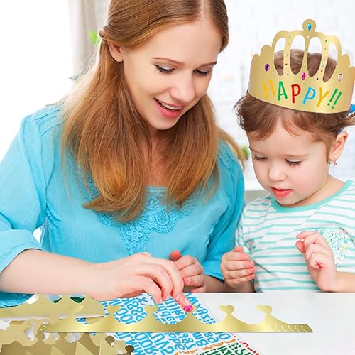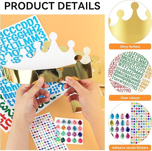 Powmag Couronne en Papier Doré, Couronne Chapeau de Fête, Chapeau en papier couronne, 5 Pièces Chapeaux de Couronne & 2 Pièces Autocollants Strass & 4 Pièces Autocollants Alphanumériques