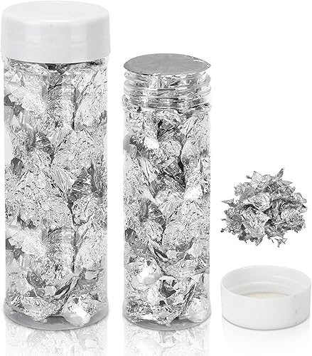 Feuille Argent, Feuilles Argent Décoratifs Feuilles Métalliques Feuille D'imitation D'argent Pour Dorure, Peinture, Résine, Travaux Manuel, Ongles Et Décoration De La Maison