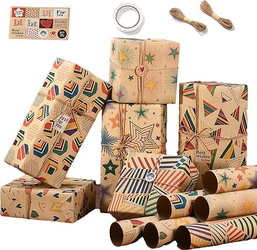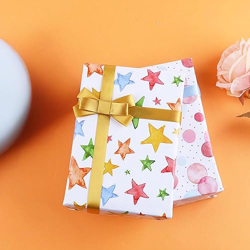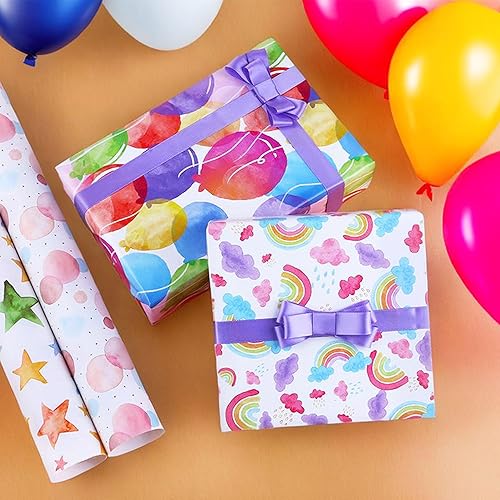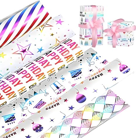 Lot de 4 feuilles de papier cadeau d'anniversaire pour enfants, filles, garçons, hommes, femmes, ensemble de rouleaux pour Noël, décoration de cadeau festive (70 x 50 cm)