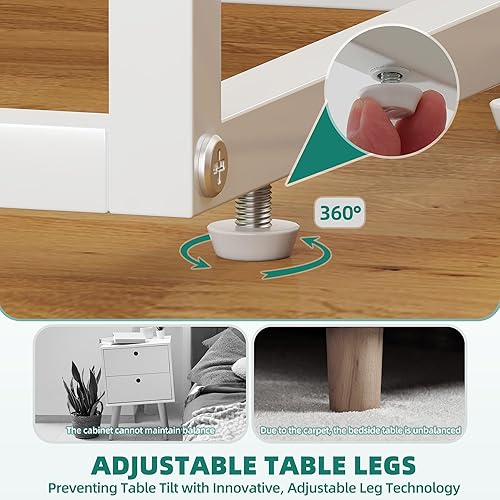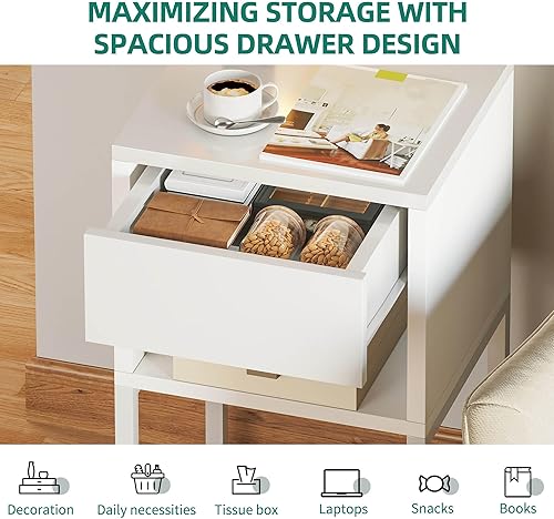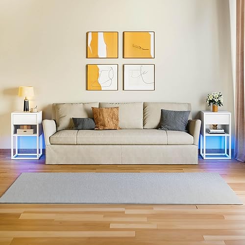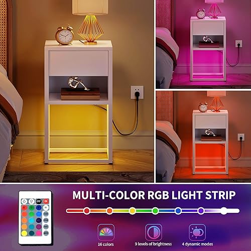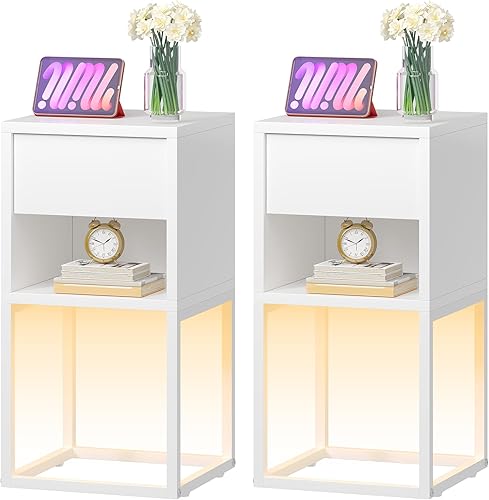 YITAHOME Lot de 2 Table de Chevet avec LED avec Tiroir Table de Canapé Ouverte à 3 Niveaux avec étagère Ouverte, Blanc