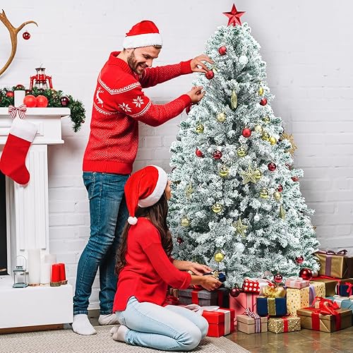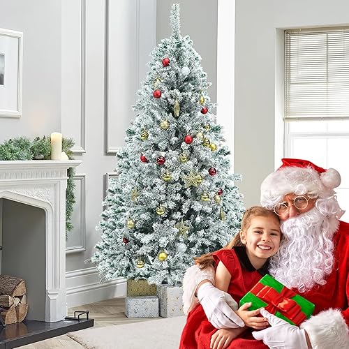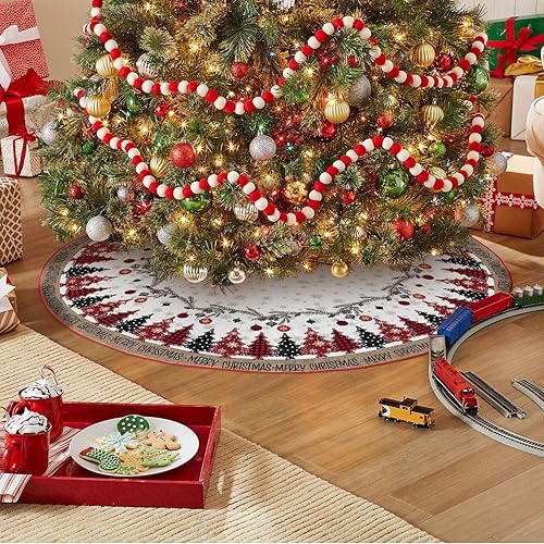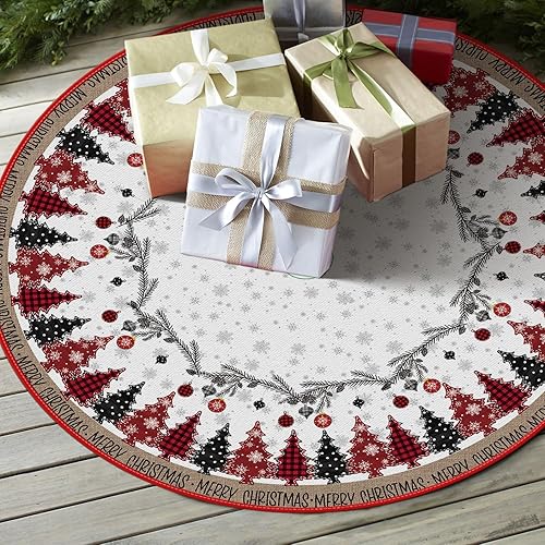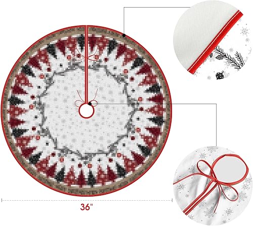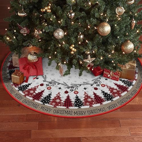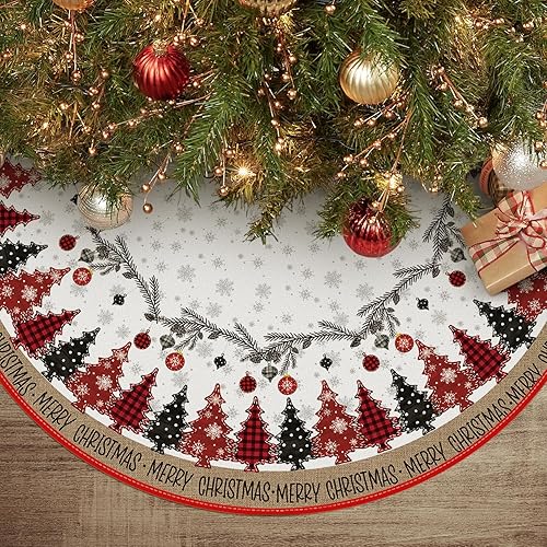 Artoid Mode Jupe de sapin de Noël à carreaux rouges en pin et flocons de neige - 122 cm - Décoration de fête de vacances