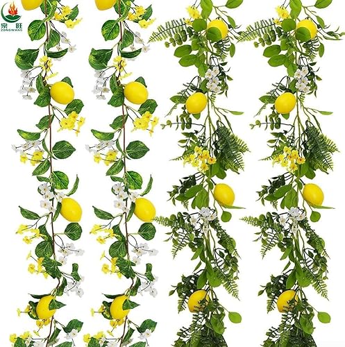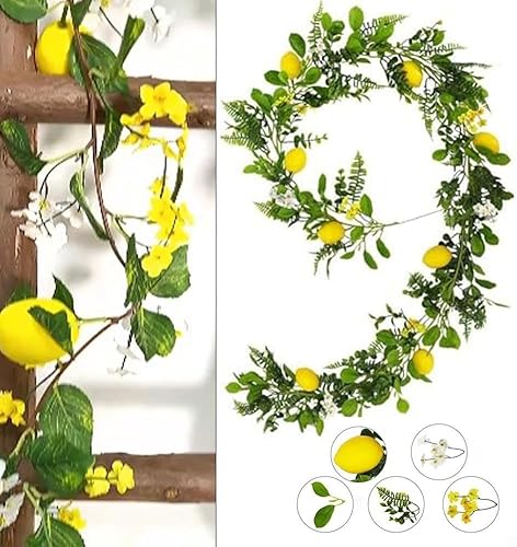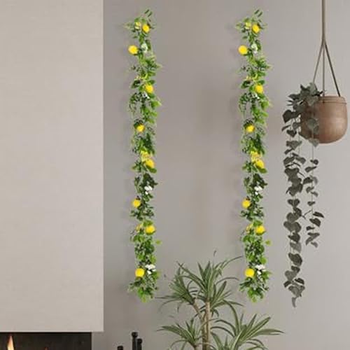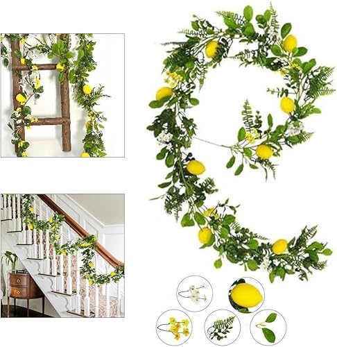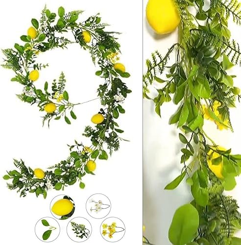 Yuanpgky Guirlande de citrons réalistes de 2,5 m, feuilles de vigne artificielles en soie pour décoration de mariage, maison, fête, cuisine, salon, terrasse, décoration murale